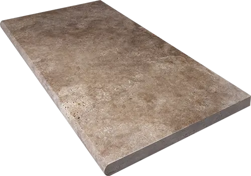 Pierre naturelle aux bords droits/coupés et à la finition antique, le Travertin Caramel Light se distingue par sa texture authentique et son charme rustique chic.