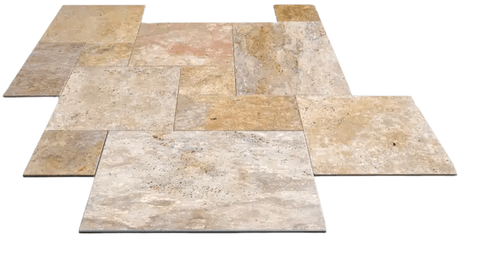 The Antique Travertine Mix Opus Set from Pierre Jardin is an ideal choice for those looking for a high-quality, aesthetically pleasing and durable floor covering. With its 4-size Opus format, antique finish, and straight-cut edges, this travertine brings a touch of authenticity and refinement to any space.