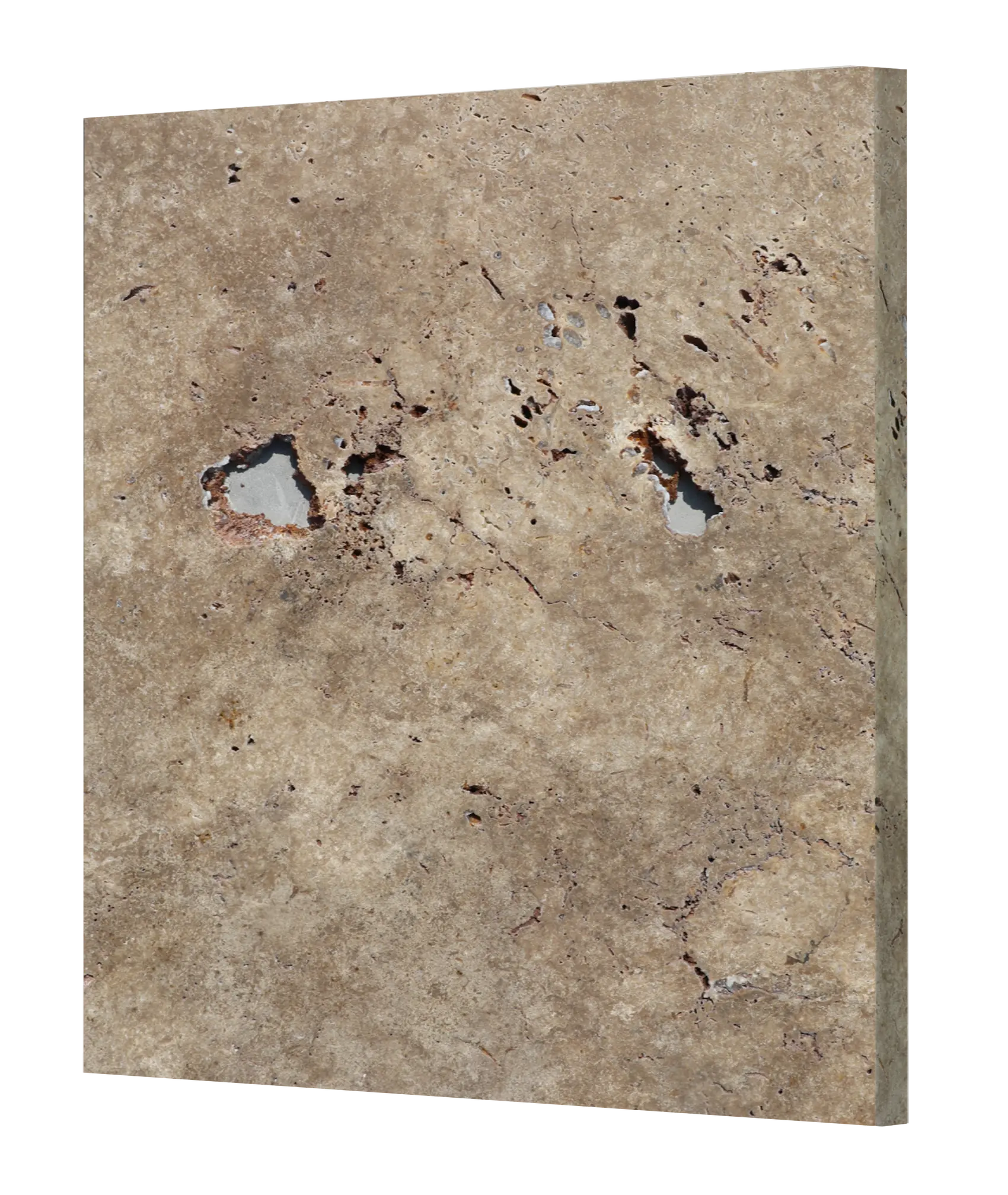 En intérieur : Parfait pour un sol en travertin dans une salle de bain, une cuisine ou un salon, ajoutant une touche chaleureuse et authentique.