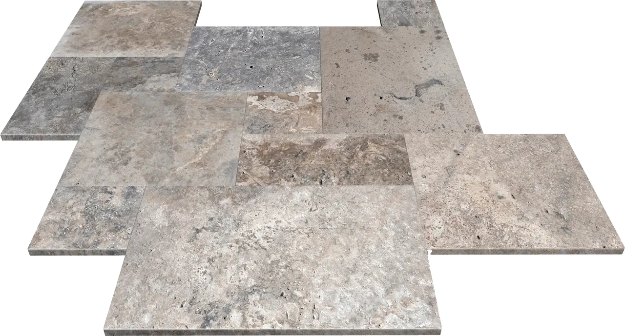 Disponible en gris et argent, ce travertin apporte une touche de raffinement unique. Le gris est parfait pour un design moderne et minimaliste, idéal dans les salons spacieux, cuisines contemporaines et terrasses élégantes. Quant à la teinte argentée, elle reflète la lumière et agrandit visuellement les espaces plus restreints, en particulier dans les patios, salles de bain et allées extérieures.